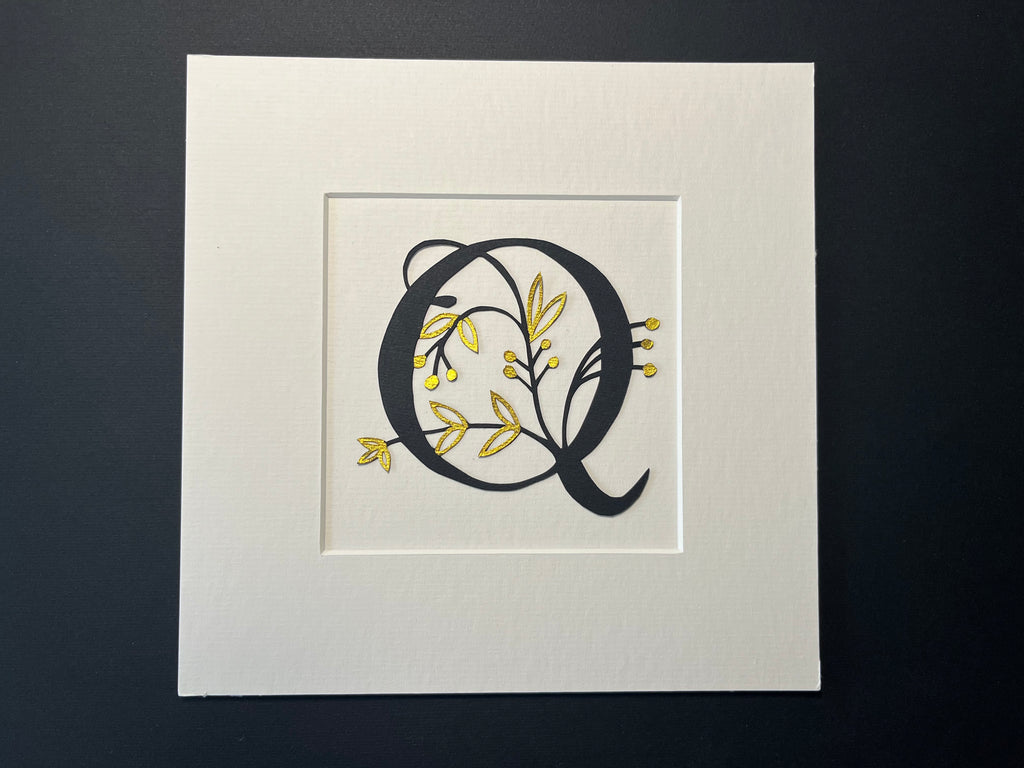 Black & Gold Botanical Initial – Hand-Cut Paper Art