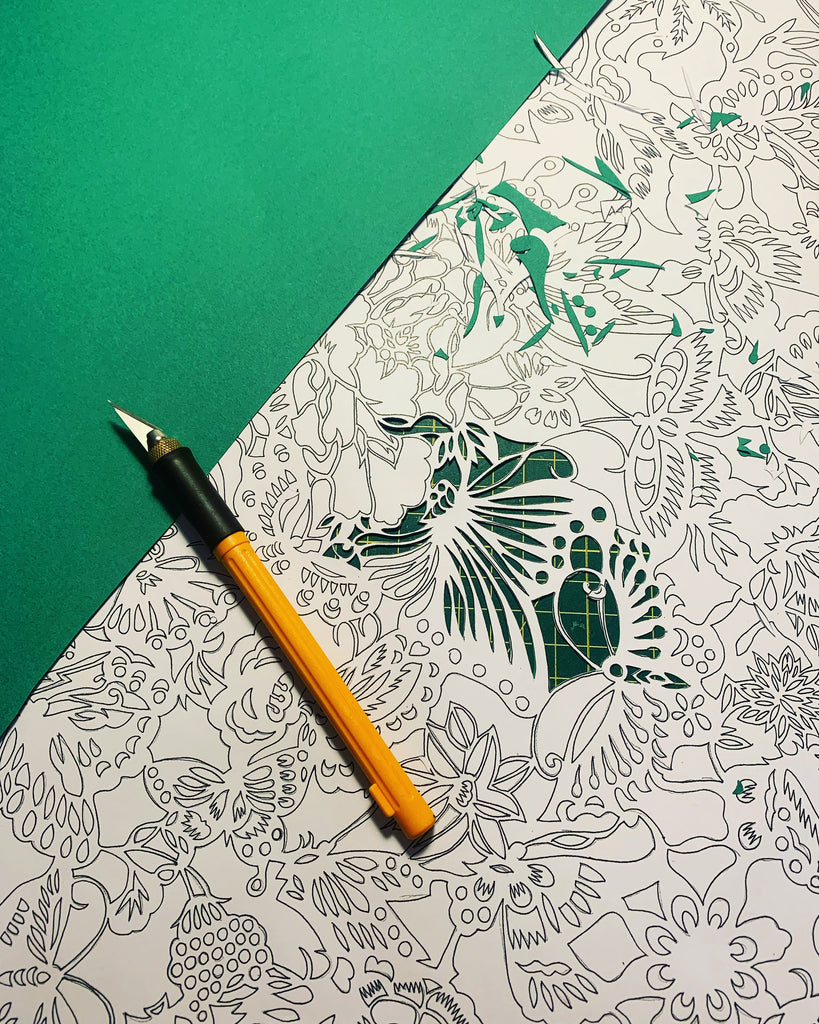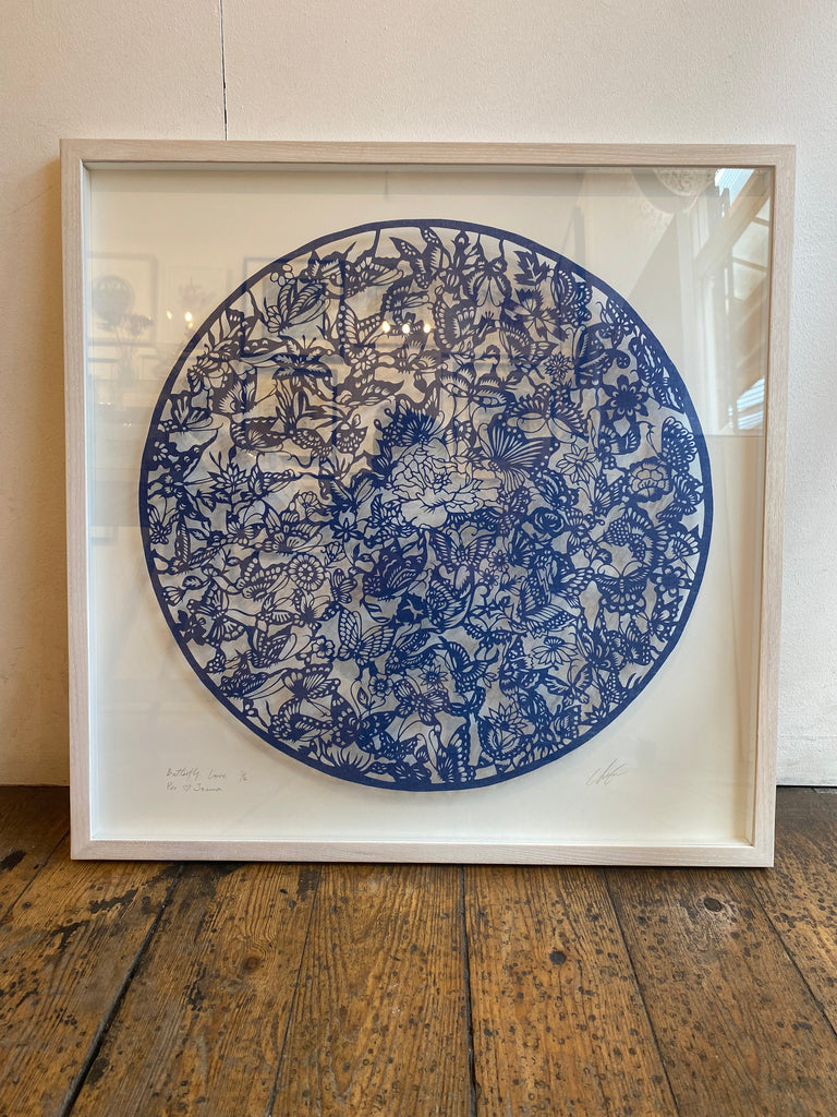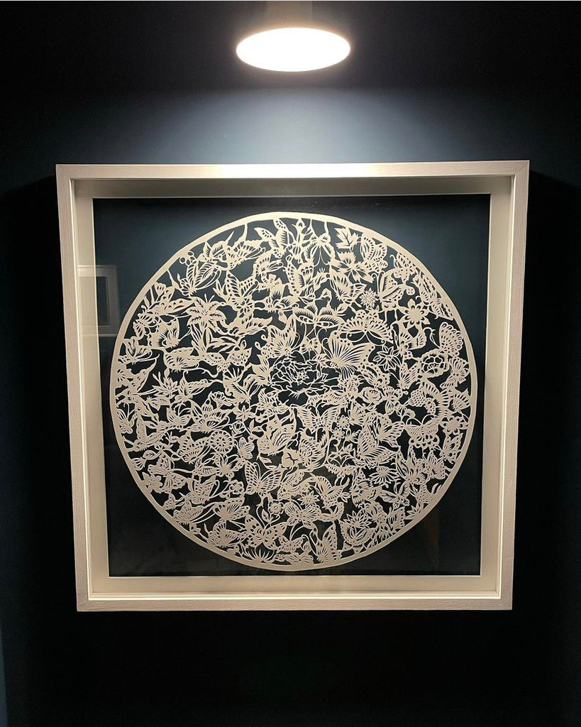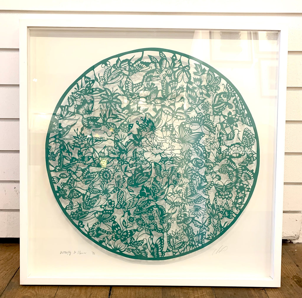 “Butterfly & Flower” is meticulously hand-cut from a single sheet of Chinese rice paper. Every curve and detail is carved slowly with a precision knife, allowing the paper to open into layers of movement, rhythm, and life.